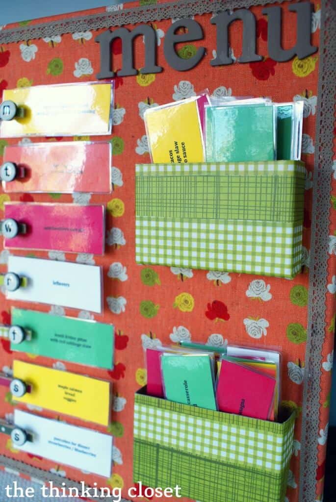 This board idea from Better Homes & Gardens lets you see the recipes for each day easily–just refer to them when making your grocery list too!