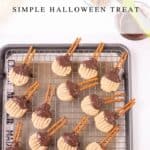 - Drizzle melted chocolate at the end of where “broom” attaches to pretzel “handle”. I like to drizzle a little extra onto the pretzels too.