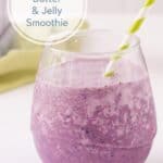 When my son was little, he brought a peanut butter and jelly or peanut butter and honey sandwich to school for lunch nearly every day. And while he’s expanded his tastebuds a bit since then, he’s also a big fan of this Peanut Butter and Jelly Smoothie. You just can’t beat the flavor and it’s kid friendly!