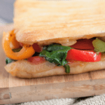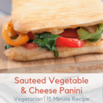 Packed with bell peppers, onions, mushrooms and spinach, this Simple Sauteed Vegetable Panini can be made in under 15 minutes. Perfect for lunch or dinner!