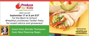 Speaking of social media, I will be hosting a Back-To-School Twitter party this coming Monday, September 17th at 9:00 p.m. EST to share ideas for packing a healthy lunch box! I’ll be joined by Produce for Kids and Wholly Guacamole who will be sponsoring the party and giving away some great prizes including grocery store gift cards and of course, guacamole prize packs! To join, RSVP using the Tweetvite link here or just follow us using the hashtag #healthylunchboxes to join in!